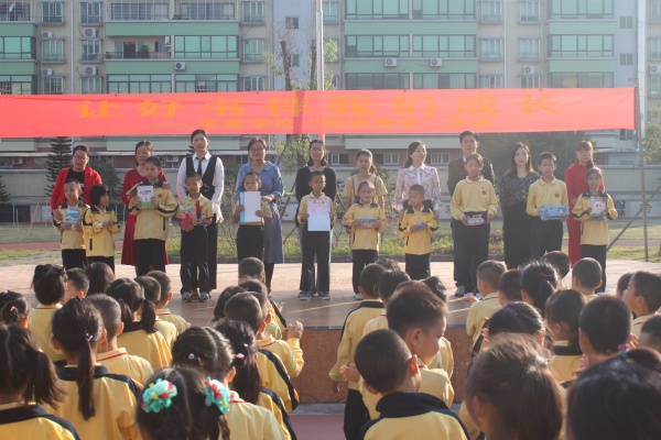 “學(xué)會讀書,便是點(diǎn)燃火炬;每個(gè)詞的每個(gè)音節(jié)都發(fā)射火星”。讀書使人明智,讀書使人快樂。為了進(jìn)一步激發(fā)同學(xué)們對閱讀的興趣, 11月8日上午,芙蓉學(xué)校師生相聚籃球場,開展了“讓好書伴我們成長”為主題的閱讀“淘寶”抽獎活動。