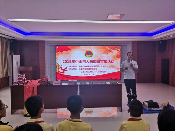 為進(jìn)一步提升中學(xué)生對(duì)人民防空教育的認(rèn)知,掌握防空防災(zāi)的基本知識(shí)和技能。10月28日下午,芙蓉學(xué)校在階梯教室內(nèi)舉行了一場(chǎng)別開(kāi)生面的人防培訓(xùn)課。本次培訓(xùn)是由中山市住房和城鄉(xiāng)建設(shè)局人防科主辦,由芙蓉學(xué)校和廣東伍玖伍安全文化科技有限公司協(xié)辦。
