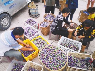 綏江縣南岸鎮(zhèn)李子收購(gòu)點(diǎn),工人們?cè)诮o李子篩選和分類。