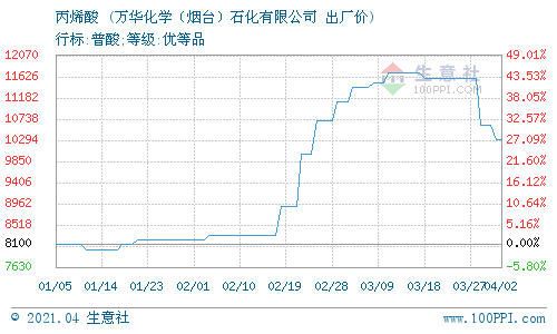 生意社:3月31日萬(wàn)華化學(xué)石化華北丙烯酸價(jià)格動(dòng)態(tài)