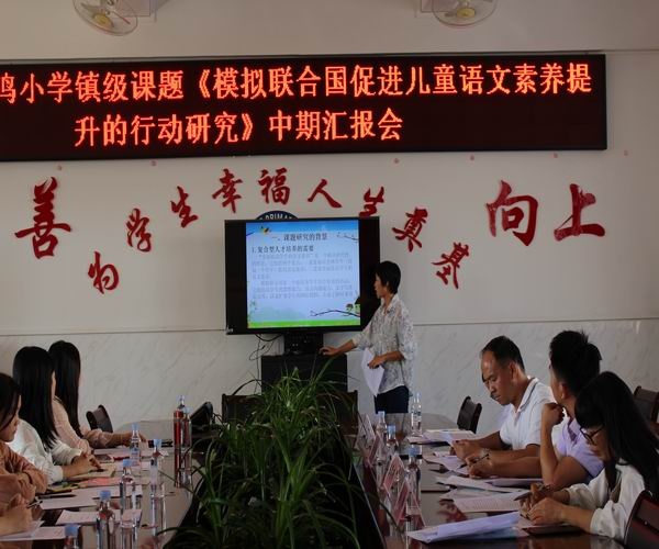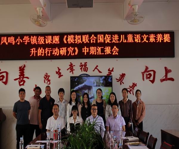 11月12日,鳳鳴小學(xué)舉行鎮(zhèn)級課題《模擬聯(lián)合國促進(jìn)兒童語文素養(yǎng)提升的行動研究》中期匯報會,東鳳鎮(zhèn)課題專家組的林紅主任、陳名勝主任、何中建主任、陳簿新主任,鳳鳴小學(xué)吳桂鳳副主任以及課題組全體成員參加本次會議。