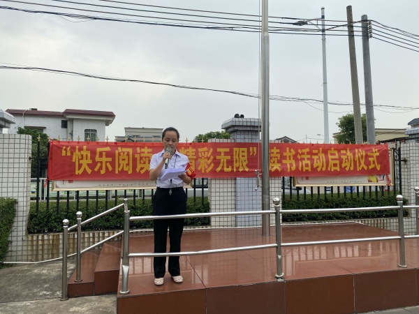 接下來,六年級年級組長周佩玲老師向同學(xué)們發(fā)起讀書的倡議?!皬淖x一本好書開始,從積累一句經(jīng)典名言開始,從每一個清晨開始....”手捧一本書籍,就是手捧一份希望,打開希望的門窗。