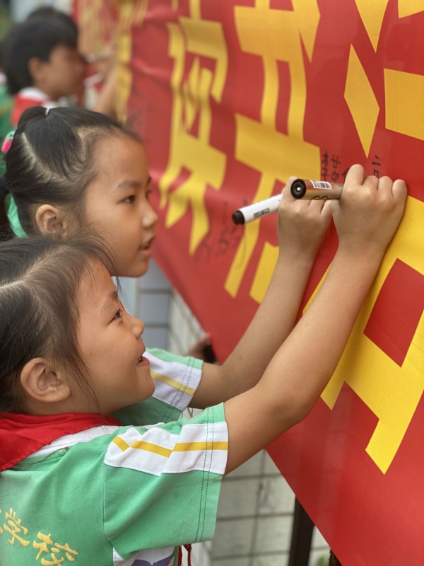 啟動儀式第三項,師生代表在橫幅上簽名。他們在橫幅上一筆一劃認(rèn)真地寫著名字,心中裝滿了對閱讀的向往。本次讀書活動啟動儀式在校長艾時胤先生、鄧亮副校長的帶領(lǐng)下,教師代表和學(xué)生代表一起簽名中結(jié)束了這場書籍的盛宴。