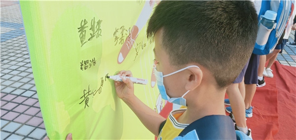秋風送爽,涼風習習。9月1日早上,孩子們踏入校園,在迎新墻上書寫的簽名與朝陽互映生輝,折射出了新的希望。