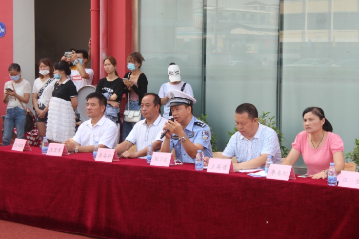 首先,全體師生以熱烈的掌聲歡迎新生的到來。隨后家長帶領(lǐng)學(xué)生進(jìn)入現(xiàn)場,學(xué)生們現(xiàn)場誦讀<<弟子規(guī)>>。然后進(jìn)入點(diǎn)朱砂和開筆啟智環(huán)節(jié),每個(gè)班的班主任和副班主任手持毛筆,為班級里的每一位同學(xué)輕點(diǎn)朱砂。接下來交警大隊(duì)民警梁衛(wèi)忠對學(xué)生進(jìn)行了交通安全教育,教育學(xué)生如何防范交通事故的發(fā)生。
