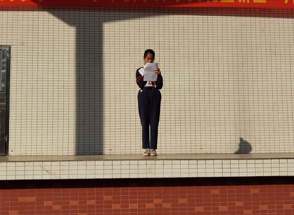 在國旗下講話中,四(1)中隊(duì)隊(duì)員講述了消防英雄的故事,進(jìn)行了消防知識的宣傳,提醒全體隊(duì)員時(shí)刻銘記“火災(zāi)猛于虎”,倡導(dǎo)每一位隊(duì)員都積極主動地學(xué)習(xí)消防知識,掌握基本的消防技能。由此拉開了本次消防活動的序幕。