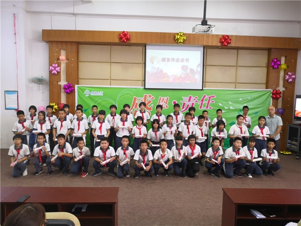 接著畢業(yè)生代表與家長代表分別用真摯的話語表達了對母校的依戀,對老師的感激。接著,吳煥林校長為畢業(yè)生鄭重地頒發(fā)了畢業(yè)證書,同學們依次上臺,領取人生第一張正式的畢業(yè)證書——小學畢業(yè)畢業(yè)證。