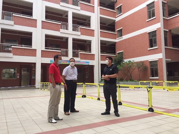 梁銳強(qiáng)委員一行到達(dá)裕民小學(xué)后,在羅東校長的陪同下察看了家長接送緩沖區(qū)、測溫設(shè)備、臨時健康觀察室、校醫(yī)室、洗手設(shè)施、防疫物資儲備等。梁委員邊看邊詳細(xì)詢問,“現(xiàn)在學(xué)生都返回中山了嗎?”“學(xué)生每天都堅持在智立方打卡申報健康嗎?”“教職工、家長的粵康碼申報情況還順利嗎?”“目前防疫物資儲備還有什么困難嗎?”在得到確切的一一答復(fù)后,他對裕民小學(xué)的返校復(fù)學(xué)準(zhǔn)備工作給予了肯定。此后,他還不忘向羅東校長特別叮囑:“師生馬上就要返校了,既要關(guān)心他們身體上的健康,也要關(guān)注大家的心理調(diào)適問題。做到平平安安返學(xué)校,開開心心教與學(xué)?!?/p>