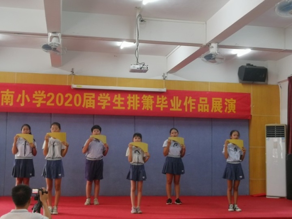 活動中,2020屆畢業(yè)學生還進行了畢業(yè)作品展演,他們用深情、悅耳動聽的排簫曲表達著自己六年在校時光的美好。最后,六年級學生吹奏一首《友誼地久天長》結(jié)束了此次活動,美妙的排簫聲在下南小學校園里回蕩。