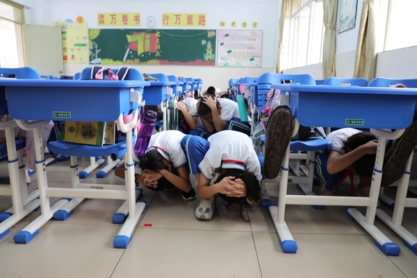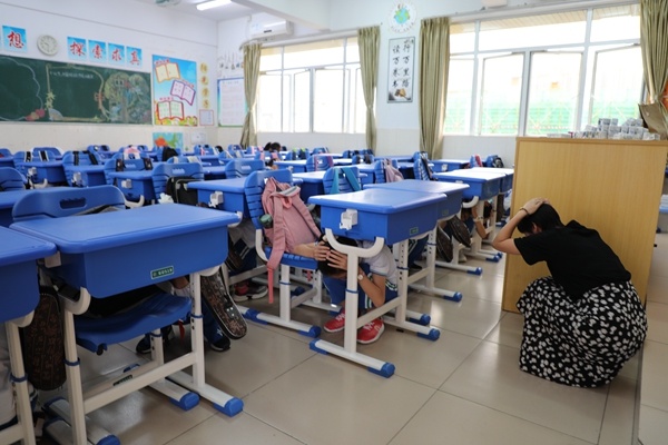 這次演練活動(dòng),全校師生給予了高度重視,前期的安全教育,演練的有條不紊,后期的總結(jié)提升,一切都按計(jì)劃進(jìn)行。上午9:30分,隨著警報(bào)聲在校園里急促響起,參演師生快速反應(yīng),躲進(jìn)桌下,就近緊急避險(xiǎn),警報(bào)聲結(jié)束,同學(xué)們?cè)谡卑嘀魅蔚慕M織下,迅步走出課室,秩序井然地按指定路線快速疏散,各個(gè)樓層負(fù)責(zé)老師最后進(jìn)行確認(rèn),保證沒有一個(gè)學(xué)生滯留,全部學(xué)生在最快時(shí)間內(nèi)疏散到指定的安全地點(diǎn),班主任向場(chǎng)地負(fù)責(zé)人報(bào)告人數(shù)。