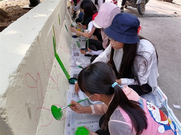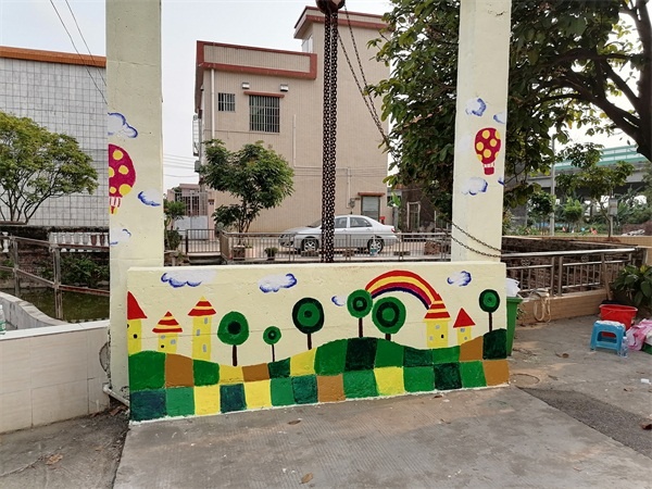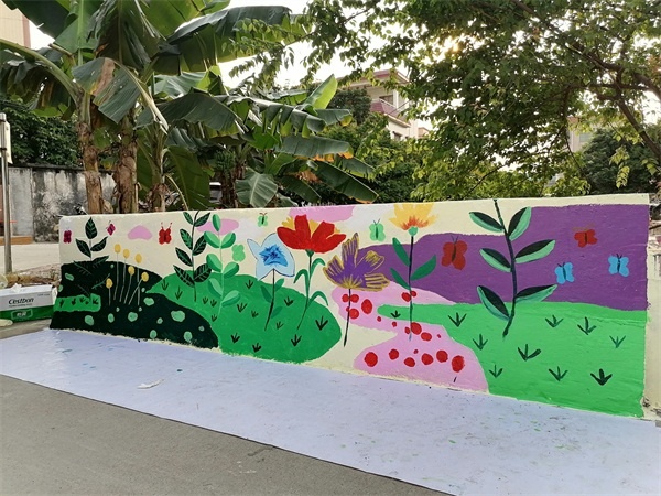 家長(zhǎng)和孩子們配合默契,大膽創(chuàng)新,先用粉筆在墻面勾勒出大致輪廓,接著進(jìn)一步完善細(xì)節(jié),然后用彩色的顏料進(jìn)行上色,一幅幅色彩斑斕、童真童趣的作品便“出爐”了。家長(zhǎng)、學(xué)生、教師和社區(qū)工作人員,通力合作,用自己的方式詮釋著美好有趣的綠色環(huán)保世界,美化著社區(qū)人居環(huán)境,得到居民一致贊賞。