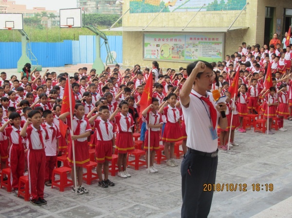 為紀(jì)念中國少年先鋒隊(duì)成立70周年暨喜迎少先隊(duì)廣東省第七次代表大會(huì),在少先隊(duì)員中培育和踐行社會(huì)主義核心價(jià)值觀,開展理想信念教育,10月12日,大豐小學(xué)開展了以“紅領(lǐng)巾與祖國共成長”為主題的紀(jì)念中國少年先鋒隊(duì)成立70周年活動(dòng)。