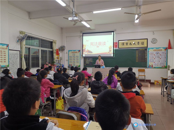 12月2日,在我國第六個“國家憲法日”暨全國法制宣傳日即將來臨之際,為積極貫徹實施“國家憲法日”宣傳活動,增強全體師生的法制意識,港口鎮(zhèn)民主小學精心開展了“弘揚憲法精神 厚植愛國主義情懷”憲法宣傳周系列活動。