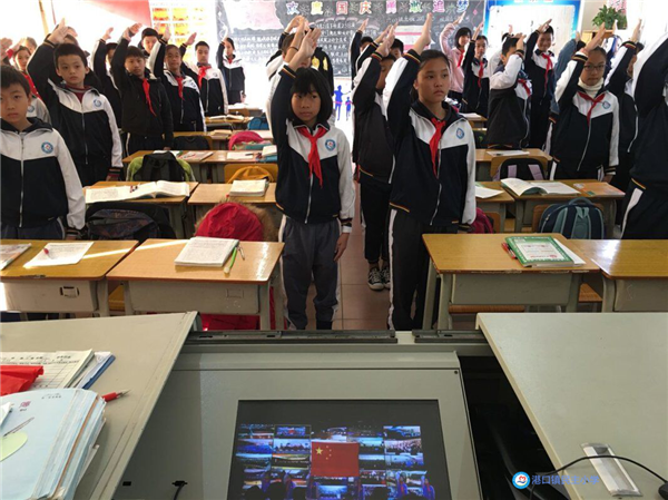 升旗儀式上,五(1)中隊鄧思雨同學以“憲法伴我們成長”為題進行國旗下講話。梁沛悠等同學通過小品《知法守法》來教育同學們做知法守法的小公民。