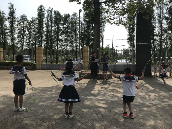 第二個測評項目是體育“六個動”。本校注重培養(yǎng)學(xué)生的鍛煉興趣、意志品質(zhì)、合作精神和人際交往能力,使每個學(xué)生掌握1-2項終身受益的體育鍛煉項目,養(yǎng)成良好的體育鍛煉習(xí)慣和健康生活方式。學(xué)校根據(jù)每個年級學(xué)生的身體素質(zhì),選定了六項體育運動項目,如跳繩、踢毽、乒乓球、羽毛球、籃球、足球等。各個班級有序地來到操場上,在陽光的沐浴下積極地進(jìn)行體育運動,在操場上盡情揮灑汗水,展示著各自的體育技能。