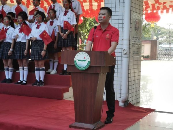 上午八點(diǎn),升旗儀式正式開始。升旗手莊嚴(yán)肅穆地升起了國(guó)旗,鮮艷的五星紅旗在微風(fēng)中飄揚(yáng),國(guó)歌縈繞著校園,全校師生唱響對(duì)祖國(guó)的深情和自豪。隨后,港口鎮(zhèn)黨委委員黃建鋒作國(guó)旗下講話,帶領(lǐng)大家回顧了新中國(guó)騰飛崛起的難忘歲月。70年披荊斬棘,70年風(fēng)雨同行。從任人宰割到屹立世界東方,從改革開放到構(gòu)建法制社會(huì),幾經(jīng)沉浮,今天的繁榮富強(qiáng)為祖國(guó)的昨日交上了一幅美麗的畫卷,銳意進(jìn)取的浪潮為祖國(guó)的明天奏響了進(jìn)軍的樂章,號(hào)召全體師生不忘初心,牢記使命。