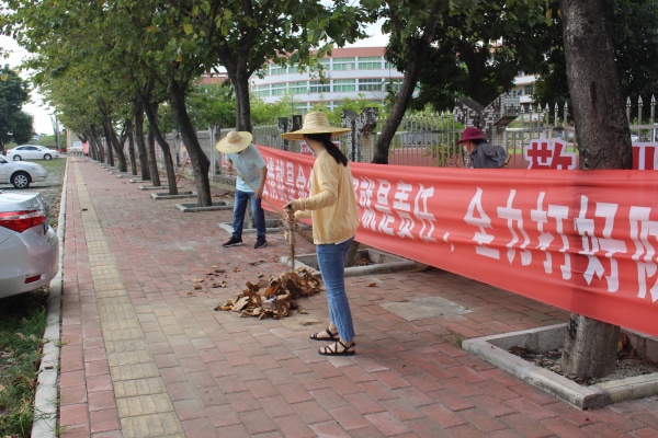 大南中學精心策劃組織教師們對校園外橫二線大橋西側衛(wèi)生、大南公交車站、大南派出所圍墻外側、學校牌坊外側路面、學校外停車場以及校內(nèi)約1000個平方米進行徹底清潔,清除有色垃圾、雜草枯葉約2噸。