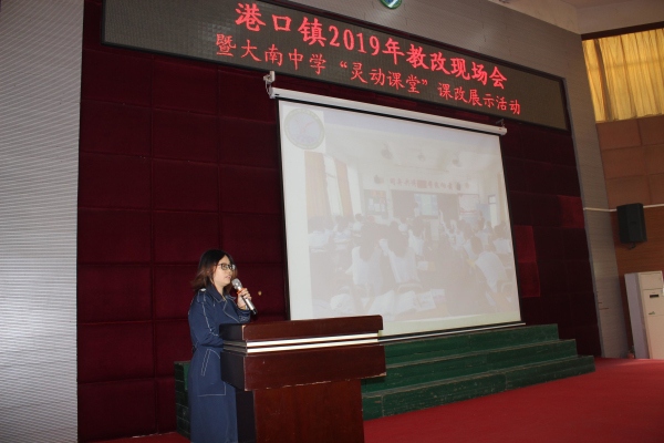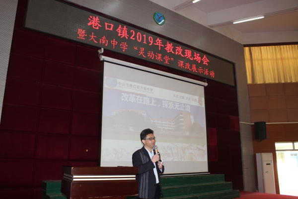 為展示港口鎮(zhèn)教學(xué)改革的成果,2019年12月11日上午,港口鎮(zhèn)教學(xué)改革現(xiàn)場(chǎng)會(huì)暨大南中學(xué)“靈動(dòng)課堂”課改展示活動(dòng)在大南中學(xué)舉行。參加本次活動(dòng)的有中山市教研室邱惠芬、張?zhí)﹦?、郭躍輝、夏建軍、辛鍵五位教研員,港口鎮(zhèn)黨委黃建鋒委員、港口鎮(zhèn)文體教育局陳麗華局長、港口鎮(zhèn)教育事務(wù)指導(dǎo)中心劉憲軍主任、港口鎮(zhèn)教育事務(wù)指導(dǎo)中心蘇少偉、蘇彩南教研專干,以及鎮(zhèn)內(nèi)外學(xué)校領(lǐng)導(dǎo)、老師及部分家委近120人?;顒?dòng)由港口鎮(zhèn)教育事務(wù)指導(dǎo)中心劉憲軍主任主持。