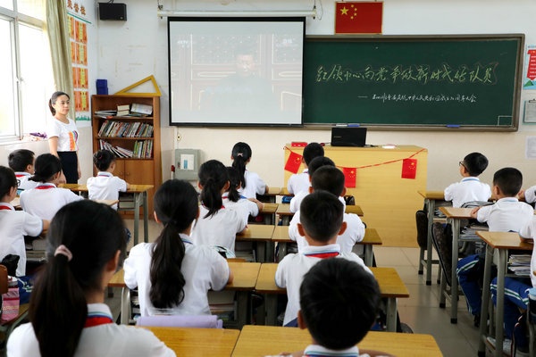 10月14日,少先隊大隊利用主題班隊會的時間,開展了各項主題活動:少先隊輔導(dǎo)員向隊員們講解紅領(lǐng)巾、少先隊標(biāo)識的內(nèi)涵,普及少先隊標(biāo)志禮儀的規(guī)范,組織隊員唱好國歌、隊歌,唱響《我和我的祖國》等主旋律歌曲,學(xué)習(xí)歌曲產(chǎn)生創(chuàng)作的時代背景、代表象征的精神含義等;各中隊通過觀看視頻,認(rèn)真學(xué)習(xí)和聆聽習(xí)總書記在慶祝中華人民共和國成立70周年大會上的重要講話,牢記習(xí)爺爺對少先隊員的期望和囑托;同時,各中隊還開展了“我和紅領(lǐng)巾的故事”分享會,分享自己與紅領(lǐng)巾的故事,將自己的小夢想融入與祖國發(fā)展的大追求中。