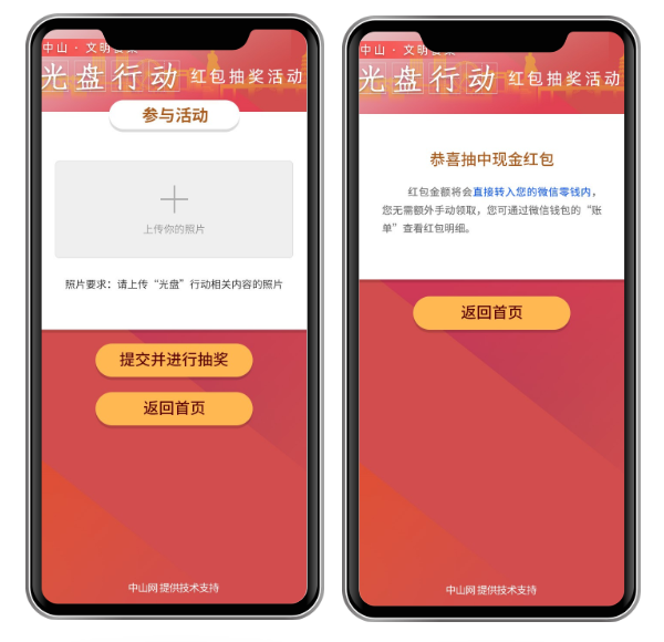 參與者將就餐后的“光盤(pán)”照片上傳到活動(dòng)頁(yè)面即可抽取紅包。
