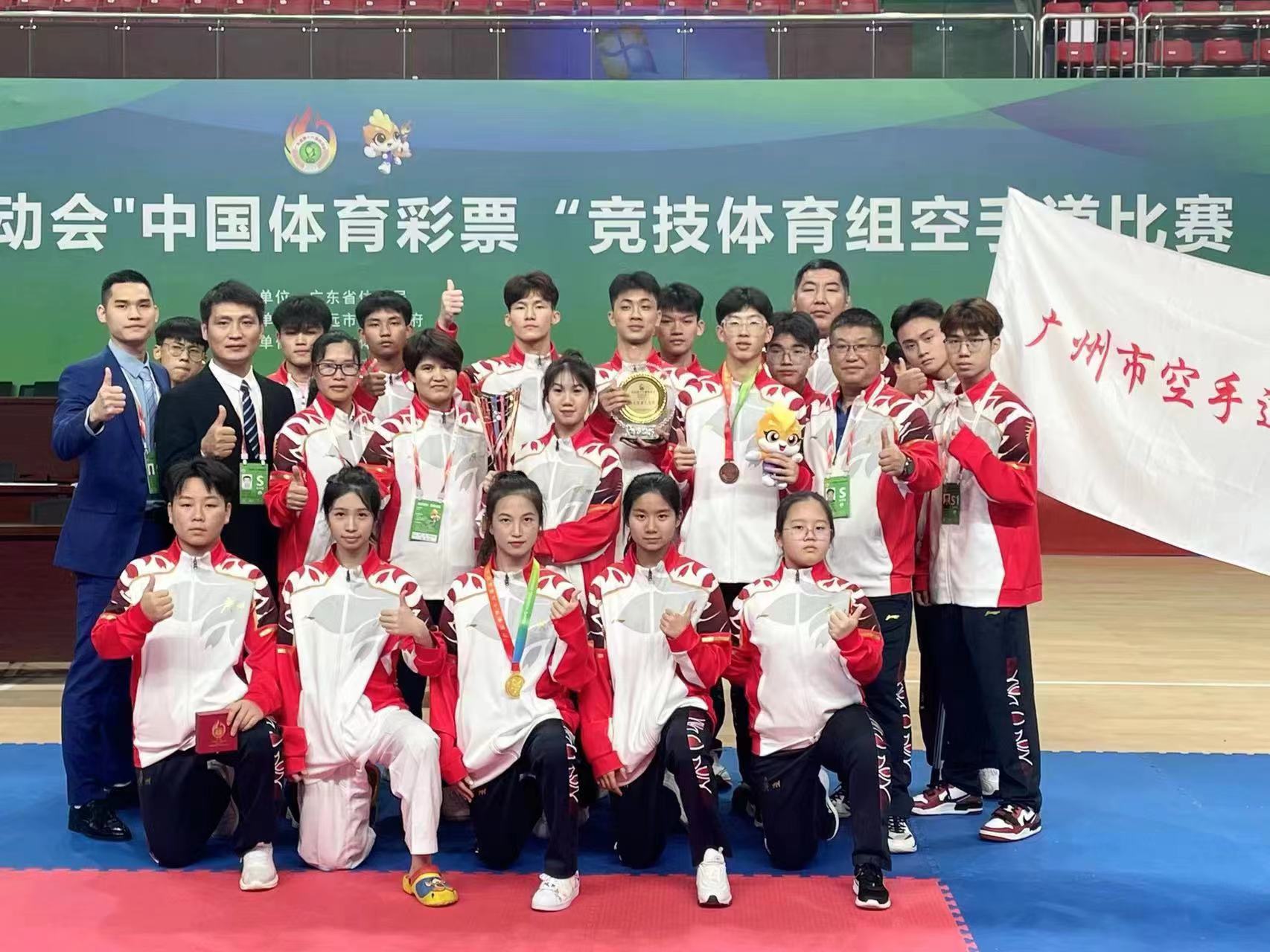 日前,廣東省第十六屆運動會空手道項目比賽在清遠連州市舉行,廣州體育代表團空手道隊共派出19名運動員參加20個小項的比賽,共獲得2金2銀5銅,138.5分,金牌數(shù)并列第4、獎牌數(shù)躋身三甲,并獲體育道德風尚獎,實現(xiàn)運動成績與精神文明雙豐收。