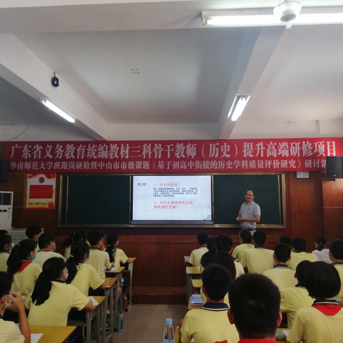 9月13日,廣東省義務教育統(tǒng)編教材三科骨干教師(歷史)提升高端研修項目——華南師范大學班跟崗研修暨中山市市級課題《基于初高中銜接的歷史學科質量評價研究》研討活動在中山市阜沙中學進行,華南師范大學班跟崗學員、市級歷史課題組成員共30多位老師參與本次研討會。