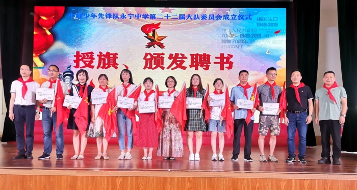9月8日下午,為進一步加強對學(xué)校少先隊工作的領(lǐng)導(dǎo),永寧中學(xué)團委按照“黨建帶團建,團建帶隊建”的工作思路,培養(yǎng)少先隊員的主人翁意識,在學(xué)校體育館隆重舉行了中國少年先鋒隊永寧中學(xué)第二十二屆大隊委員會成立暨新生、志愿者宣誓儀式。參加儀式的有陳清茂校長、陳華梁副校長、楊青華副校長等校領(lǐng)導(dǎo)和初一年級全體師生。