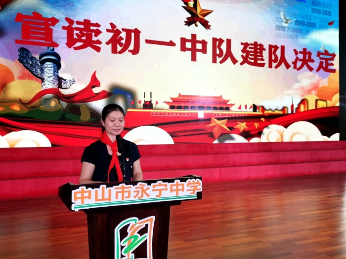大會在雄壯的國歌聲中拉開帷幕。首先,由大隊輔導(dǎo)員羅結(jié)晶副主任宣布初一年級建隊決定和中隊輔導(dǎo)員名單,并由陳清茂校長、陳華梁副校長、楊青華副校長為中隊輔導(dǎo)員授中隊旗并頒發(fā)聘書。