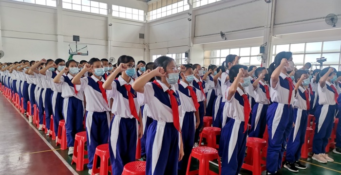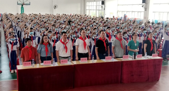 接著,由羅結(jié)晶副主任帶領(lǐng)初一年級全體學(xué)生重溫入隊誓詞:“我是中國少年先鋒隊隊員,我在隊旗下宣誓:我熱愛中國共產(chǎn)黨……”。嘹亮的誓詞,堅定的決心,再次深深植入孩子們的心靈。
