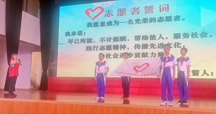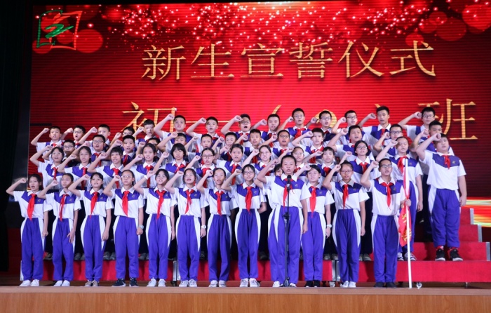最后,初一年級10個班級學(xué)生分別進行了新生入學(xué)宣誓儀式和志愿者宣誓儀式。宣誓儀式,讓新初一的少先隊員們更加明確學(xué)校規(guī)章制度,更加清晰自我奮斗目標(biāo)和作為一名志愿者的光榮承諾。