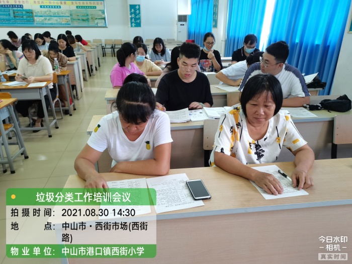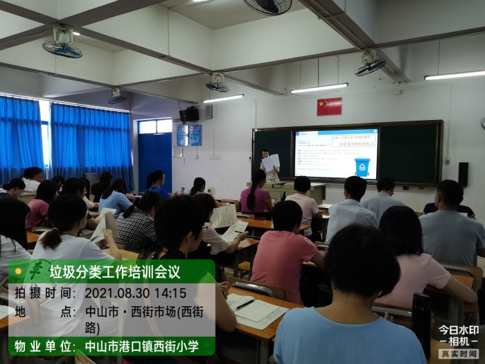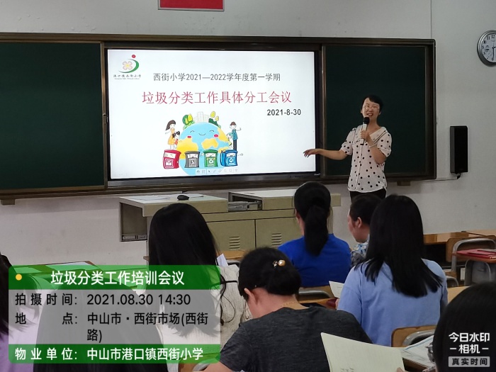 為了積極響應上級號召,促進生活垃圾減量,推進垃圾分類管理工作,8月30日下午,港口鎮(zhèn)西街小學在大多媒體室召開了生活垃圾分類工作培訓會議,有75名老師、2名保潔員、4名保安參加這次會議。在會議上,全體教職工除了觀看“生活垃圾分類知多少”視頻,還積極參與了垃圾分類知識的測試,平均分98分,準確地掌握垃圾分類基礎知識。通過此次培訓會議,提高廣大教職工的環(huán)保意識,為創(chuàng)造優(yōu)美的校園環(huán)境打下堅實的基礎。