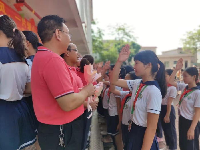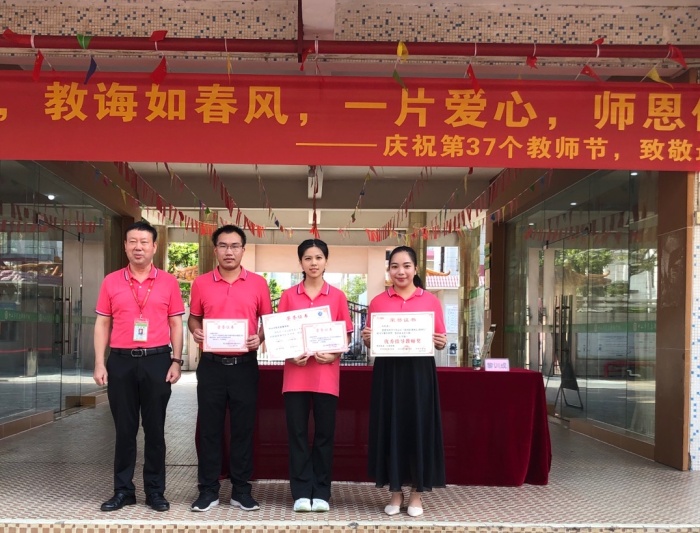 大會第二項,政教處陳七靈副主任宣讀了表彰的中山市優(yōu)秀教師及中山市優(yōu)秀少先隊輔導員,劉品江校長與何元柱副校長為他們頒發(fā)了榮譽證書。