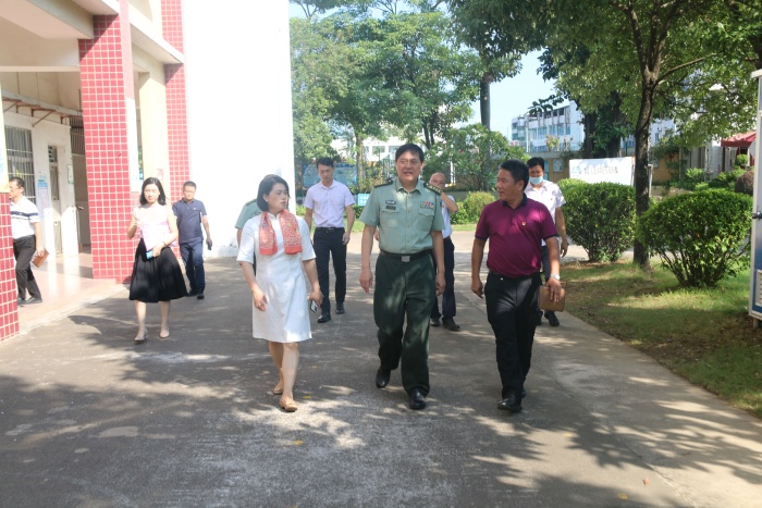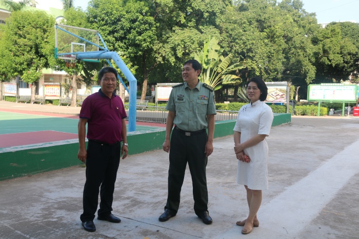 劉燦瑩等市鎮(zhèn)領(lǐng)導(dǎo)一行看望慰問了學(xué)校辛勤耕耘在教育一線的老師們,送上了黨委政府的溫暖和關(guān)懷,向老師們致以節(jié)日的祝福和親切的問候。隨后,在黎碧東校長等學(xué)校領(lǐng)導(dǎo)的陪同下,劉燦瑩一行巡視了初三教學(xué)樓、禁毒教育室、食品快檢室、交通安全活動室等相關(guān)功能場室、教學(xué)樓、辦公室等公共設(shè)施,并詳細(xì)了解了學(xué)校日常工作的相關(guān)情況。在聽取了黎碧東校長對學(xué)校建設(shè)、師生基本情況、辦學(xué)成績、新學(xué)年辦學(xué)設(shè)想以及開學(xué)防疫措施等有關(guān)概況的匯報后,政委對近年來橫欄中學(xué)在教育教學(xué)工作中所取得的成績給予充分肯定,并勉勵學(xué)校再創(chuàng)佳績。劉政委最后還表示,教育是民族振興、社會進(jìn)步的基石,希望我們?nèi)w教師要堅持立德樹人的理念,奮進(jìn)擔(dān)當(dāng),敬業(yè)愛崗,銳意進(jìn)取,同時也要繼續(xù)加強(qiáng)國防安全教育,為全市教育事業(yè)發(fā)展再創(chuàng)新績。