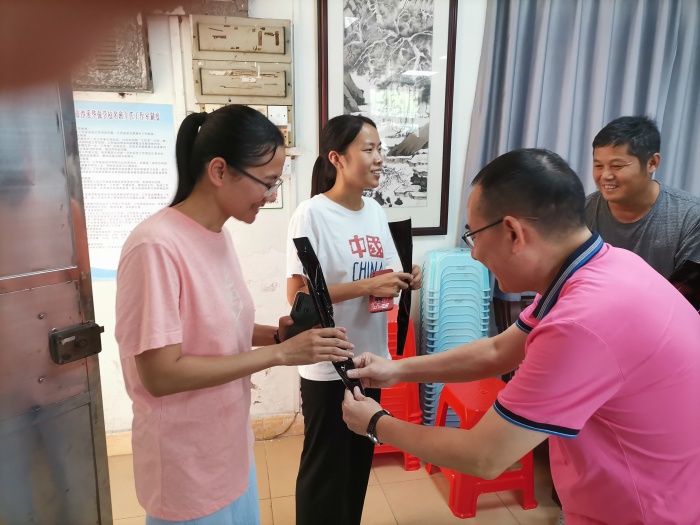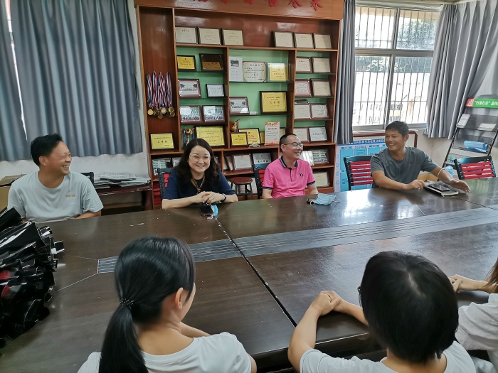 黎炳堅調研員親切地和大家一一握手,并親自為每一位與會老師送上一枝鮮花,表達對大家節(jié)日的祝福。剛坐下來,黎炳堅就和大家閑話家常,了解老師們的家鄉(xiāng)籍貫,各地風土人情,拉近了和老師們的距離,接待室里不時響起一陣陣爽朗的笑聲,氣氛融洽。隨后的座談環(huán)節(jié),黎炳賢先回顧了自己當老師的工作經歷,對老師的辛苦工作深有同感,但也為此感到自豪,因為看到學生的成長與進步,成長為祖國的棟梁之才,就是老師最大的成就感。華強學校的教師來自五湖四海,大家扎根沙溪,一支粉筆書寫青春風采,三尺講臺展人生芳華,為沙溪基礎教育事業(yè)辛勤工作、默默奉獻。黎炳堅代表鎮(zhèn)黨委和政府向全體教師表達真誠的感謝,祝福大家教師節(jié)快樂!