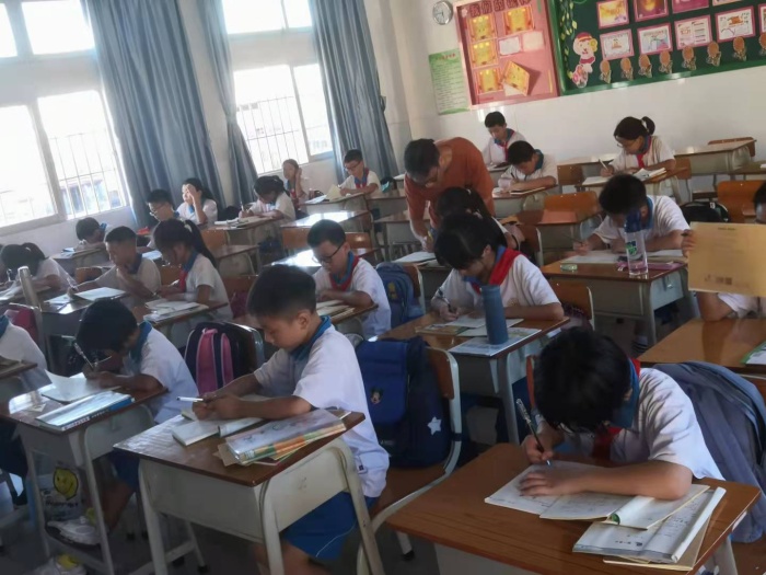 下午4點(diǎn)半,下課鈴聲敲響,校園里依然熱鬧歡躍,沒(méi)有參加課后服務(wù)的同學(xué)們收拾好書包,有序離開校園。參加課后服務(wù)的同學(xué)們?cè)诟黜?xiàng)目負(fù)責(zé)老師的帶領(lǐng)下到達(dá)指定的場(chǎng)地進(jìn)行學(xué)習(xí)或運(yùn)動(dòng)……在各班課室,同學(xué)們?cè)谡J(rèn)真地完成作業(yè),老師們及時(shí)地進(jìn)行輔導(dǎo);在籃球場(chǎng),同學(xué)們拍動(dòng)籃球,揮灑著汗水;在計(jì)算機(jī)教室,學(xué)生們?cè)诶蠋煹闹笇?dǎo)下,認(rèn)真練習(xí)著;在美術(shù)社團(tuán),孩子們拿著筆在畫紙上盡情作畫……學(xué)校本著“多元、適應(yīng)、綜合、選擇”的原則,讓學(xué)生根據(jù)興趣愛好自主選擇,使學(xué)生興趣愛好在課后服務(wù)中得到充分“滋養(yǎng)”。