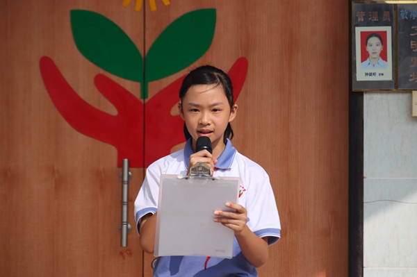 9月10日大課間,五3班的林倩婷同學(xué)代表全體同學(xué)向全校老師獻(xiàn)詞。她將無(wú)私奉獻(xiàn)的老師比作人梯、園丁、春蠶和蠟燭,言語(yǔ)中流露著對(duì)老師的感恩之情。她滿懷深情的話語(yǔ),飽含激情的言辭感染了在場(chǎng)的每一位師生。