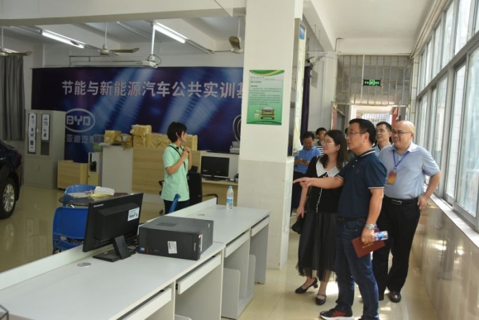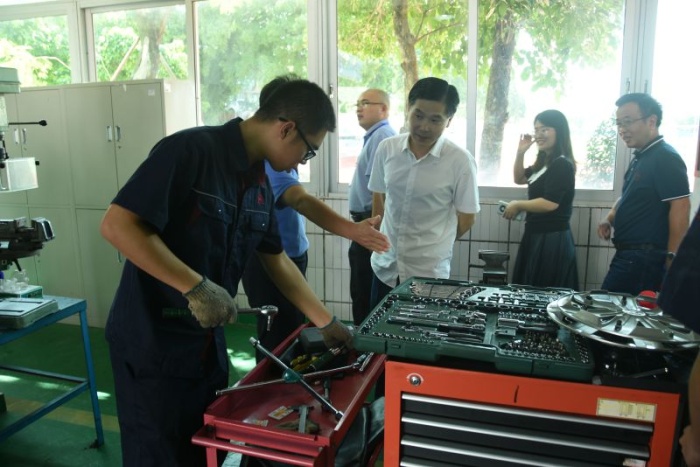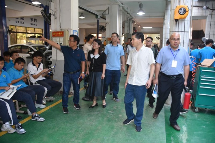 考察團(tuán)首先走進(jìn)學(xué)校汽車技術(shù)部的實(shí)訓(xùn)場(chǎng)室,觀摩師生上課實(shí)操,與師生交流有關(guān)于專業(yè)教學(xué)的設(shè)施設(shè)備、課程內(nèi)容、考核標(biāo)準(zhǔn)等具體內(nèi)容;參觀學(xué)校與企業(yè)合作的汽車維修中心,詢問校企合作的運(yùn)行機(jī)制、運(yùn)作流程??疾靾F(tuán)還走進(jìn)節(jié)能與興能源汽車公共實(shí)訓(xùn)基地,了解基地內(nèi)環(huán)境、人員和設(shè)備等情況,感受正在建設(shè)廣東省雙高專業(yè)的新能源汽車維修專業(yè)群的新進(jìn)展。