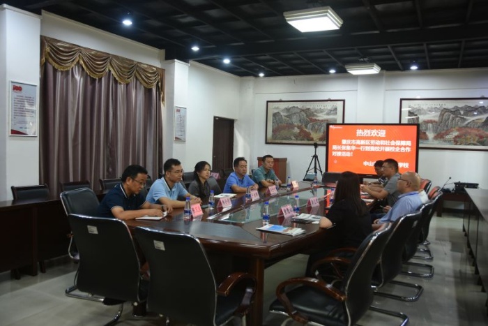 參觀結(jié)束后,雙方進(jìn)行座談。考察團(tuán)對(duì)學(xué)校在專業(yè)建設(shè)、教學(xué)改革、校企合作項(xiàng)目管理等方面取得的經(jīng)驗(yàn)表示贊賞,并詳細(xì)介紹肇慶高新區(qū)的園區(qū)規(guī)劃、產(chǎn)業(yè)平臺(tái)、企業(yè)特色、人才政策等方面情況,其中進(jìn)駐了50多家新能源汽車及汽車零部件產(chǎn)業(yè)企業(yè),亟需大量高質(zhì)量產(chǎn)業(yè)技能人才。沙溪理工學(xué)校校長(zhǎng)馮子川表示,校企合作是學(xué)校辦學(xué)的基礎(chǔ),也是教學(xué)改革的關(guān)鍵,尤其是在雙高專業(yè)建設(shè)過程中,新能源汽車專業(yè)正在積極主動(dòng)地尋求高質(zhì)量的校企合作,希望雙方繼續(xù)加強(qiáng)交流,優(yōu)勢(shì)互補(bǔ),共同培養(yǎng)新生代產(chǎn)業(yè)技能人才。