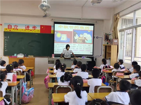 9月18日,全校各班開展了“我們的節(jié)日——中秋節(jié)”主題班會活動(dòng)。在一片歡聲笑語中,老師們通過生動(dòng)有趣的圖片、故事、音頻、視頻等,給學(xué)生們講述了中秋節(jié)的來歷和習(xí)俗。學(xué)生們沉浸在嫦娥奔月、玉兔搗藥、吳剛伐桂等故事中,聽得津津有味,體會到傳統(tǒng)習(xí)俗的魅力。老師們也強(qiáng)調(diào)了在中秋節(jié)放假期間要注意安全,以防意外發(fā)生。老師們還為學(xué)生們講述了手工燈籠的制作方法,展示了中秋節(jié)燈籠的相關(guān)圖片,布置學(xué)生們利用中秋假期,親子共同制作手工燈籠,把做好的燈籠帶來學(xué)校參加評比并布展。