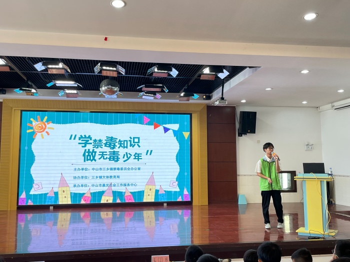 2021年9月15日上午11:00在新圩小學(xué)階梯教室,進(jìn)行了一場面向全體五年級學(xué)生的禁毒講座,主題為“學(xué)禁毒知識,做無毒少年”。本次活動(dòng)由中山市三鄉(xiāng)鎮(zhèn)禁毒委員會(huì)辦公室主辦,三鄉(xiāng)鎮(zhèn)文體教育局協(xié)辦,由中山市晨光社會(huì)工作服務(wù)中心的志愿者們到校為同學(xué)們講解禁毒知識。