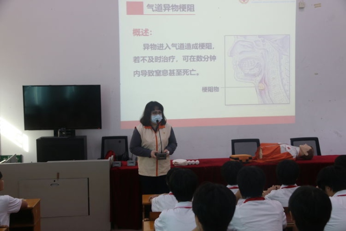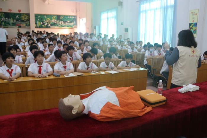 為了有效地推進應(yīng)急救護普及工作,切實增強學(xué)生災(zāi)害預(yù)防、逃生避險和自救互救能力,2021年9月22日下午4點,一場意義非凡的急救培訓(xùn)活動在橫欄中學(xué)階梯教室舉行。本次活動由中山市紅十字會衛(wèi)生培訓(xùn)中心進行指導(dǎo),由黎子丹、陳怡兩位老師負責授課,她們秉承著專注專業(yè)的精神,力求幫助全體參會的初一年級的師生有效地提高應(yīng)急救護技能。