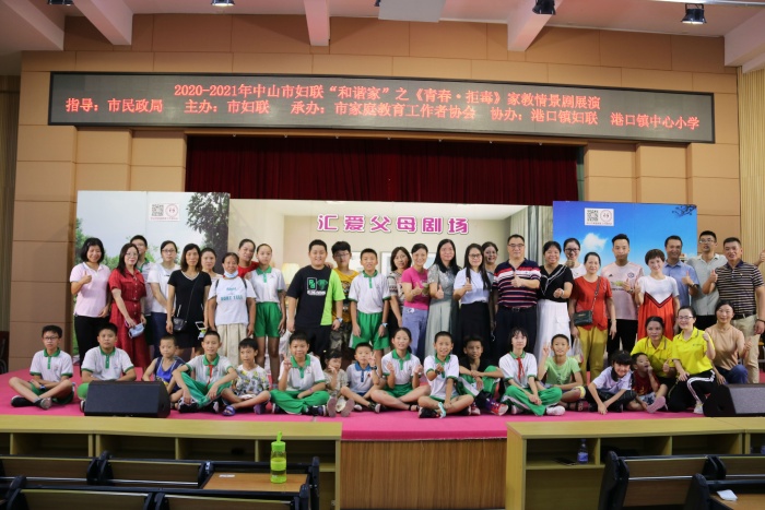 為更好地推進(jìn)家庭教育工作,引領(lǐng)廣大家庭“注重家庭、注重家教、注重家風(fēng)”,促進(jìn)家庭和睦、親子和諧,營造有利于兒童健康成長的家庭和社會(huì)環(huán)境,9月27日晚,由中山市民政局指導(dǎo),中山市婦女聯(lián)合會(huì)主辦,中山市家庭教育工作者協(xié)會(huì)承辦,港口鎮(zhèn)婦聯(lián)、港口鎮(zhèn)中心小學(xué)協(xié)辦的2021年中山市“和諧家”之《青春·拒毒》家教情景劇正在港口鎮(zhèn)中心小學(xué)大禮堂精彩上演。港口鎮(zhèn)婦聯(lián)陳麗華主席、港口鎮(zhèn)中心小學(xué)李小健校長、梁文玲副校長、丘茶芬副校長、六年級(jí)全體班主任和200多名好學(xué)親子一起觀看了本場演出。