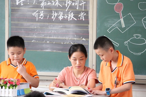 第一時(shí)段的服務(wù)內(nèi)容為作業(yè)托管。以學(xué)生自主作業(yè)、教師答疑解惑為主。老師們或耐心細(xì)致地答疑,或點(diǎn)對(duì)點(diǎn)進(jìn)行針對(duì)性輔導(dǎo),絕大部分學(xué)生能在校內(nèi)完成書面作業(yè),做到“減負(fù)不減質(zhì),松綁不松懈”。