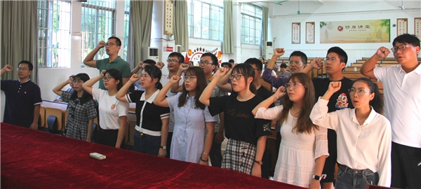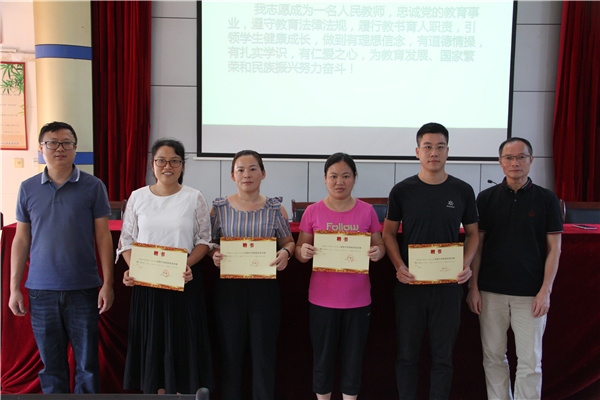 在馮杰文副校長(zhǎng)的帶領(lǐng)下,新教師莊嚴(yán)入職宣誓。慷慨激昂的聲音使他們?cè)诟袆?dòng)中增強(qiáng)了責(zé)任意識(shí),飽滿深情的錚錚誓言銘刻下他們對(duì)祖國(guó)教育事業(yè)的莊重承諾。他們將扮演新的角色,承擔(dān)新的責(zé)任、開啟新的征程。
