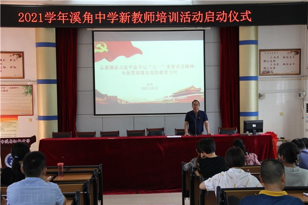杏壇常在,花開不敗。為使新聘任教師進(jìn)一步熟悉學(xué)校、了解學(xué)校、融入學(xué)校,盡快進(jìn)入工作狀態(tài),10月11日下午,溪角中學(xué)舉行了青年教師入職培訓(xùn)啟動(dòng)儀式。馮杰文副校長(zhǎng)、楊蓓副校長(zhǎng),黨支部楊明副書記及各年級(jí)主管領(lǐng)導(dǎo)出席儀式。