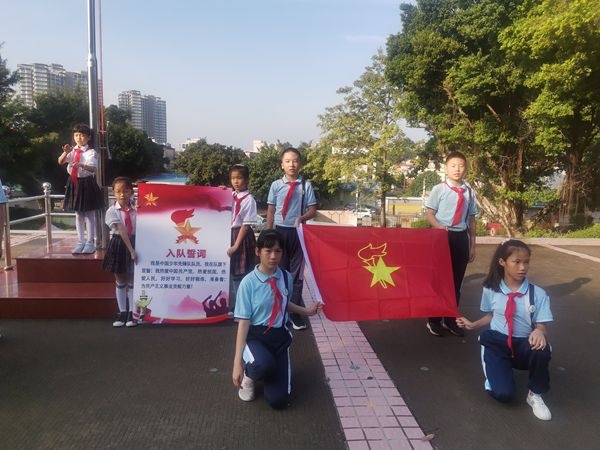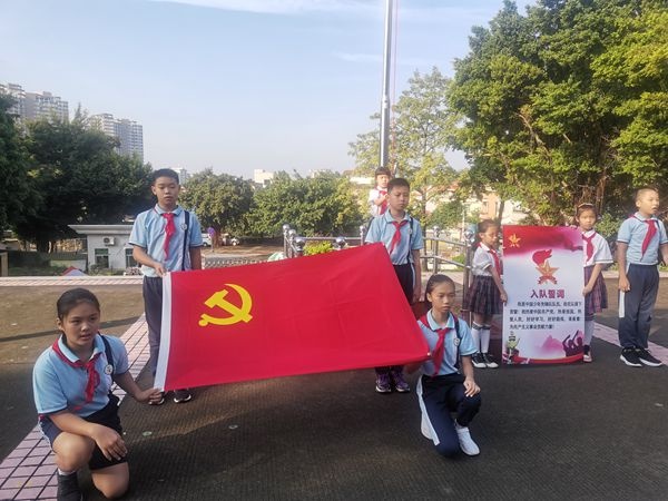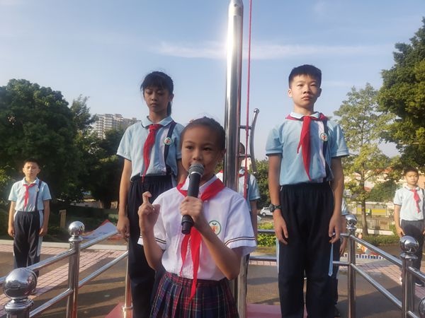 10月11日早上,沙溪鎮(zhèn)中心小學(xué)一如既往地進(jìn)行莊嚴(yán)的升旗禮活動(dòng),但與平時(shí)不一樣的是,為宣傳貫徹習(xí)近平總書記“七一”重要講話精神,貫徹落實(shí)習(xí)近平總書記關(guān)于少年兒童和少先隊(duì)工作的重要論述,認(rèn)真落實(shí)《中共中央關(guān)于全面加強(qiáng)新時(shí)代少年先對(duì)工作的意見》和少先隊(duì)第八次全國代表大會(huì)提出的“著力邁向社會(huì)、進(jìn)軍線上,加強(qiáng)社會(huì)化工作體系建設(shè)”的工作部署,同時(shí)為了迎接少先隊(duì)中山市第八次代表大會(huì)的到來,這里正在舉行一場(chǎng)特別的少先隊(duì)微儀式 ,主題為“請(qǐng)黨放心,強(qiáng)國有我”。