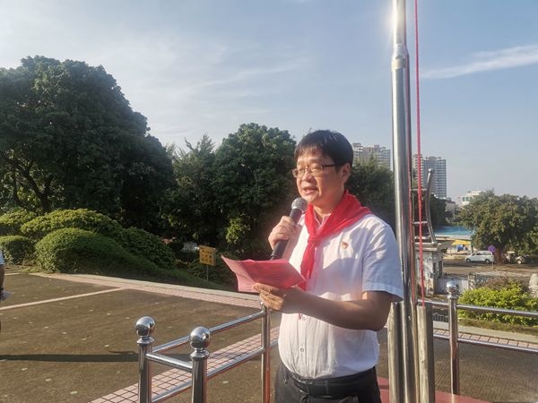 緊接著,少先隊(duì)員們高舉鮮艷的黨旗和隊(duì)旗,英姿颯爽地來到升旗禮臺(tái)前,全體隊(duì)員敬隊(duì)禮,高唱少先隊(duì)隊(duì)歌,嘹亮的歌聲立刻飄揚(yáng)在校園上空,久久回蕩。一曲結(jié)束,學(xué)校黨員教師面向鮮紅的黨旗,在華校長的帶領(lǐng)下緊握右拳,宣讀誓詞,整齊堅(jiān)定的話語深深地震撼了全體師生。大隊(duì)輔導(dǎo)員阮秀迎老師帶領(lǐng)全體少先隊(duì)員重溫入隊(duì)誓言,稚嫩真摯的童聲里飽含著深深的報(bào)國情。