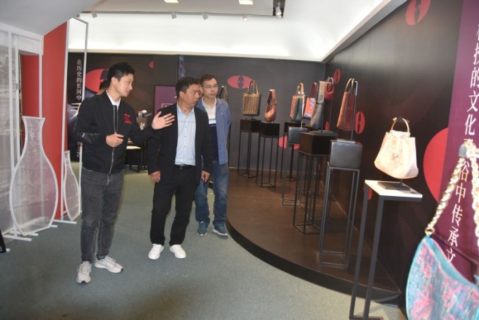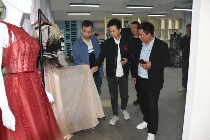 嘉賓們先后參觀了服裝數(shù)控裁床及三維量體工作室、陳小蓮?fù)b設(shè)計(jì)工作室、北京肇達(dá)?張服裝設(shè)計(jì)工作室、現(xiàn)代學(xué)徒制中英IMI授權(quán)認(rèn)證中心等校企合作產(chǎn)教融合工作室以及民族服飾文化博物館。在學(xué)??{(lán)女裝工作室,了解如何用抖音平臺(tái)講授課程并嘗試直播帶貨。在電子商務(wù)專業(yè)的校企合作買它直播基地,嘉賓們詳細(xì)了解直播業(yè)務(wù)流程、人才需求、服務(wù)企業(yè)等情況,并參觀了張小泉直播間。