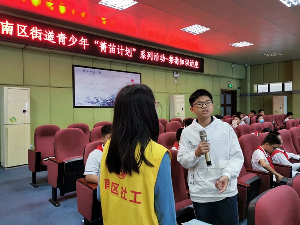 講座上,社工老師通過文字、圖片、視頻等多種形式,更多宣傳各種具有欺騙性的新型毒品,并介紹毒品的傳播套路以及對個人、家庭、社會的危害,并介紹了拒絕毒品的方式,引導(dǎo)學(xué)生在危險處境中學(xué)會保護(hù)自己。最后,禁毒社工還向同學(xué)們發(fā)出倡議,防范毒品侵害,樹立安全意識。