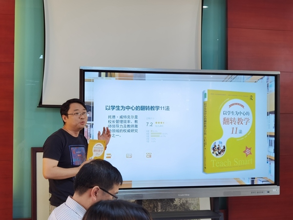 接下來,發(fā)展?fàn)I開展第一次活動(dòng)——以“推薦一本書”為主題的讀書沙龍,旨在搭建讀書會(huì)教師交流平臺(tái),實(shí)現(xiàn)教師專業(yè)水平和教學(xué)品味的同步提升。劉博、王樹志、歐陽靜平三位老師結(jié)合自身閱讀感受分別向發(fā)展?fàn)I成員分享他們對(duì)《從學(xué)生為中心的翻轉(zhuǎn)教學(xué)11法》、《瘋狂學(xué)?!泛汀兑痪€帶班》三本教育教學(xué)著作的閱讀心得和推薦理由,發(fā)展?fàn)I成員聚精會(huì)神,體會(huì)到分享老師從著作中感受到的教育活動(dòng)中的成功與快樂。